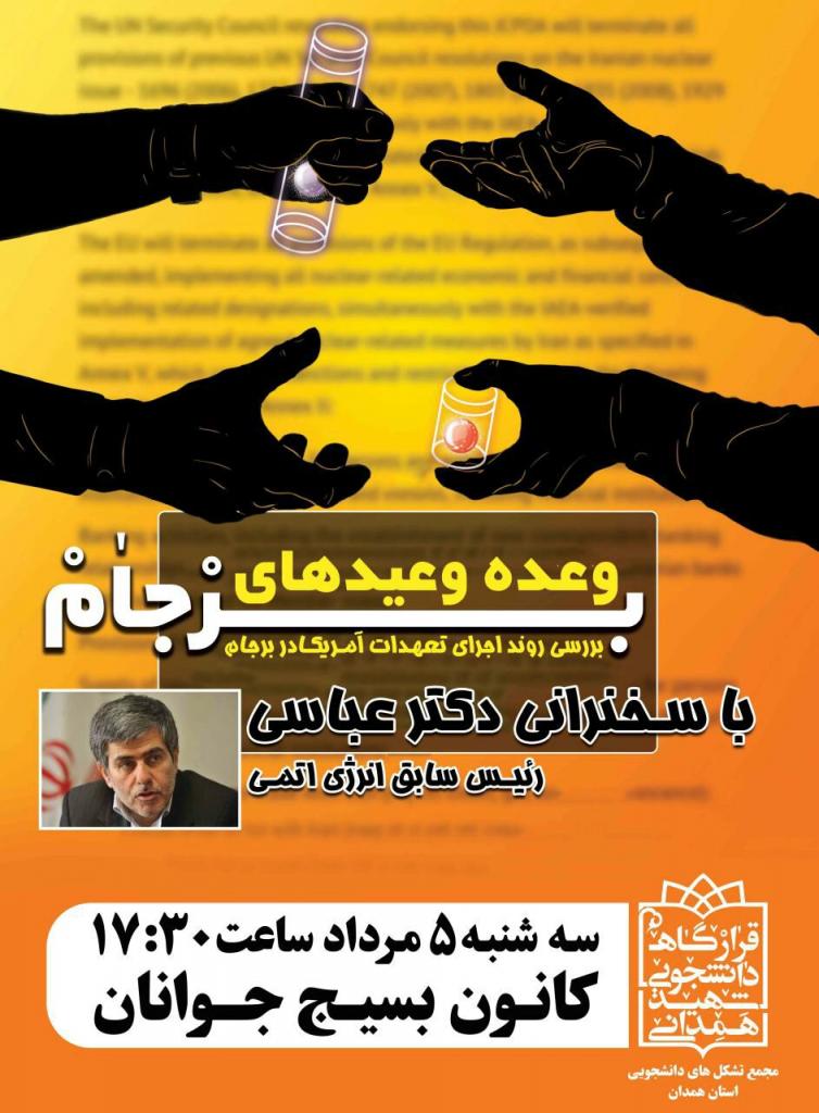 سخنران این برنامه عباسی، رئیس سابق سازمان انرژی اتمی می باشد.